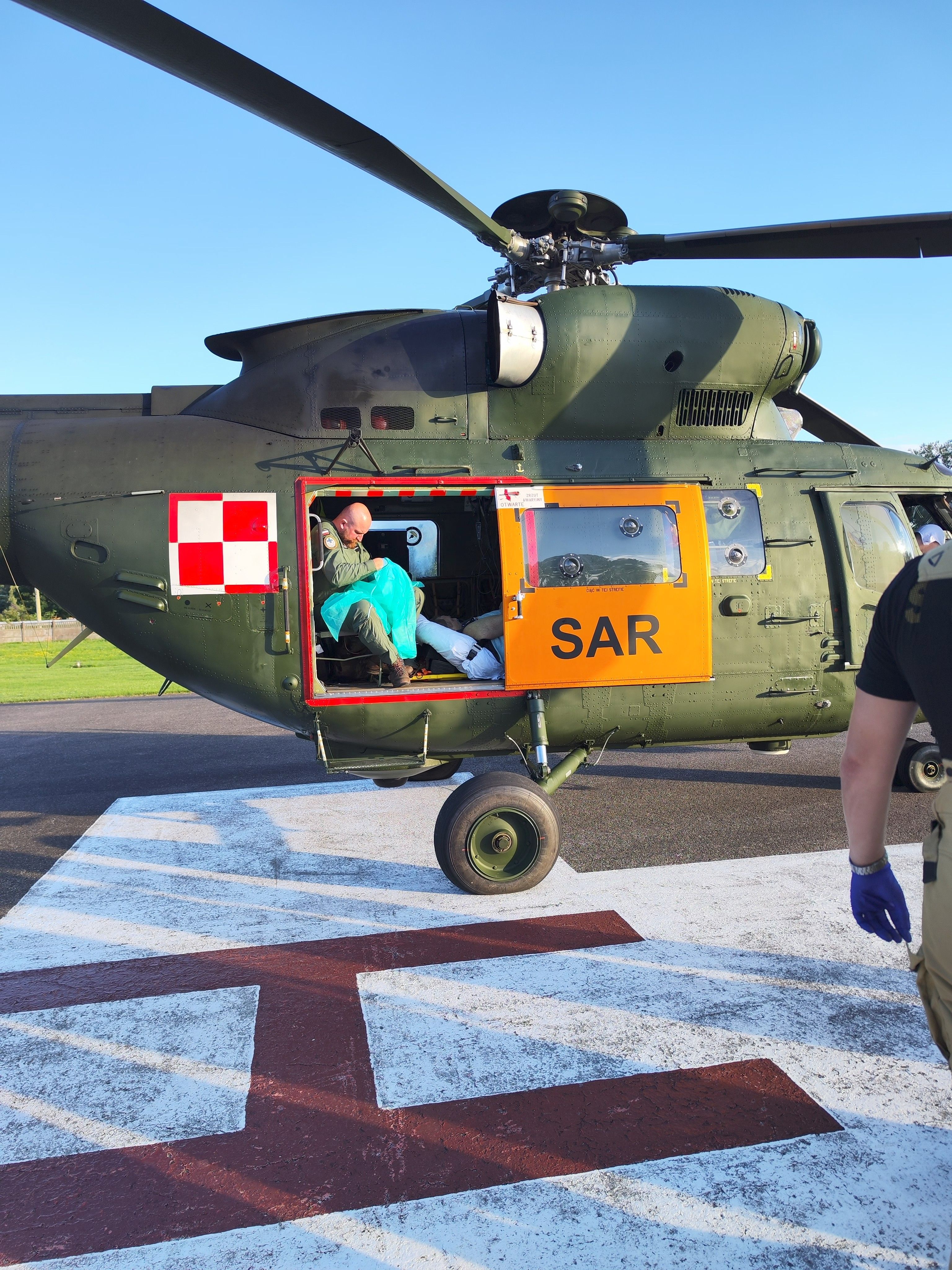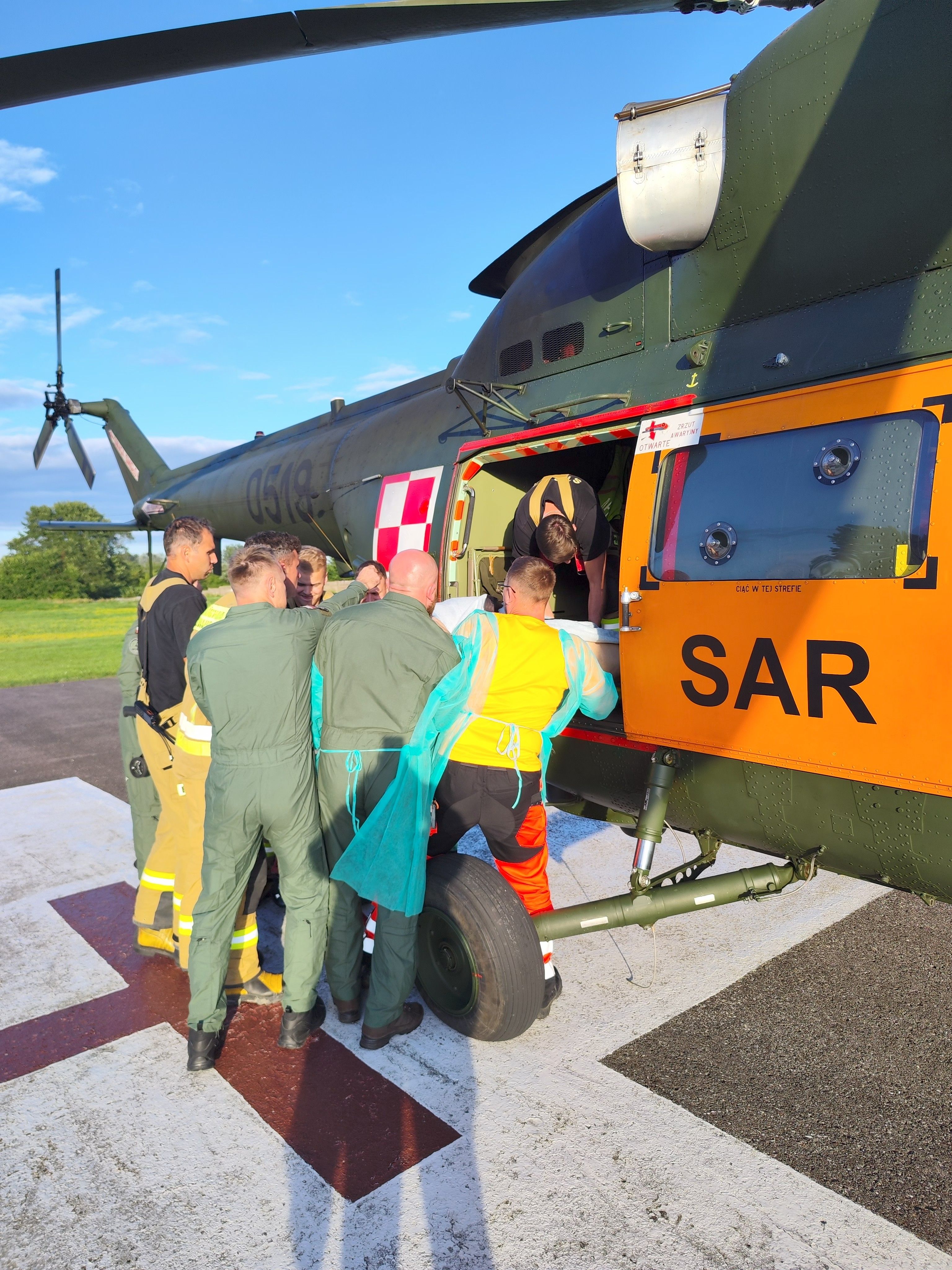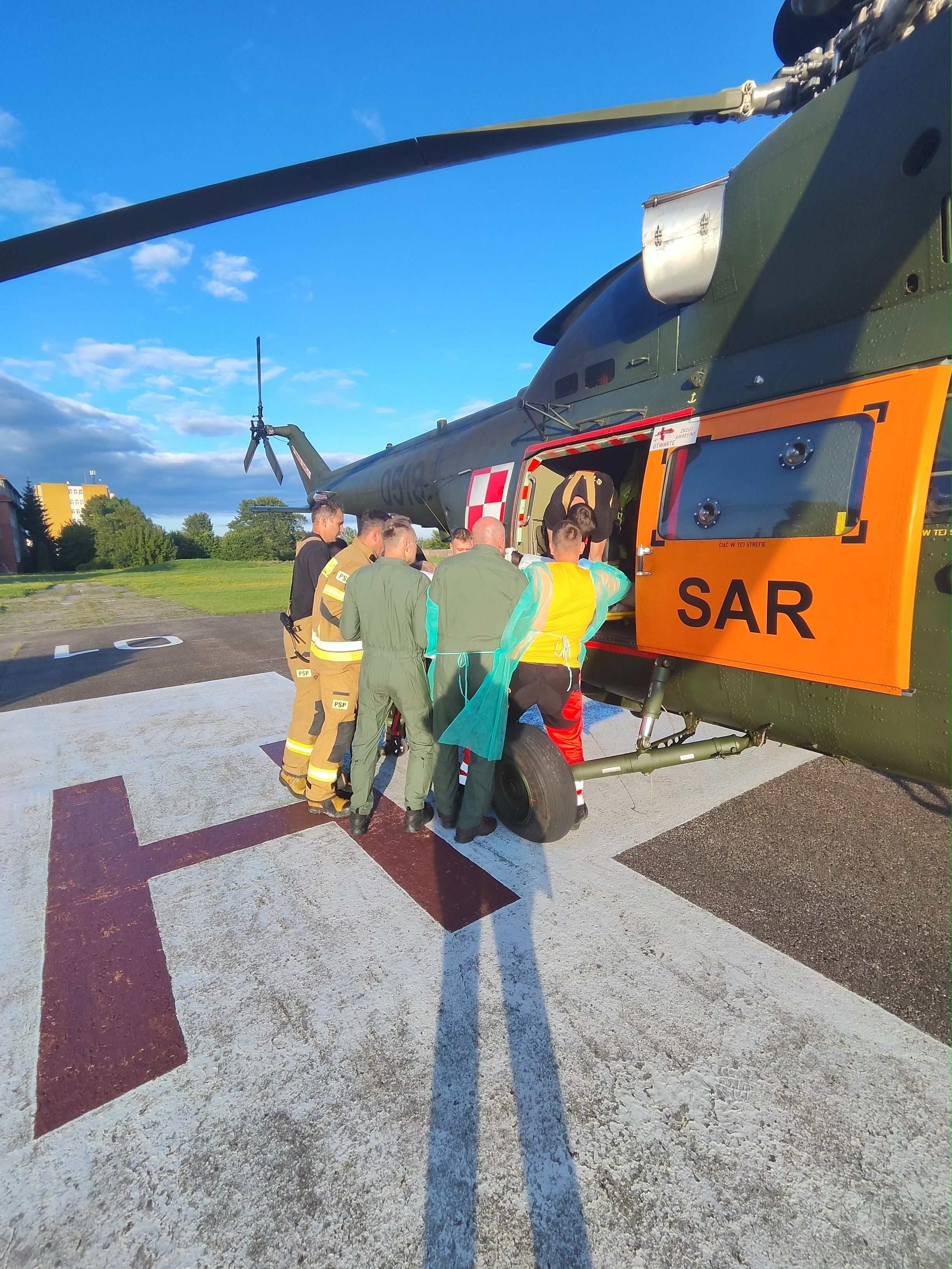 W dniu 04.08.2025 r., po przeprowadzeniu konsultacji z lekarzami Uniwersyteckiego Centrum Klinicznego Warszawskiego Uniwersytetu Medycznego przy ul. Banacha, pojawiła się konieczność transportu lotniczego pacjenta naszego szpitala. Pacjent w stanie ciężkim, lecz stabilnym, wymagał pilnego przewiezienia do ośrodka o wyższym poziomie referencyjności. Ze względu na masę pacjenta transport przy użyciu Lotniczego Pogotowia Ratunkowego (LPR) nie mógł zostać zrealizowany. Do realizacji tego zadania, poprzez Cywilno-Wojskowy Ośrodek Koordynacji Poszukiwania i Ratownictwa Lotniczego (ARCC), został zadysponowany śmigłowiec SAR W-3 Sokół z 23. Bazy Lotnictwa Taktycznego. Pacjent został bezpiecznie przetransportowany do warszawskiego szpitala w celu dalszego leczenia.