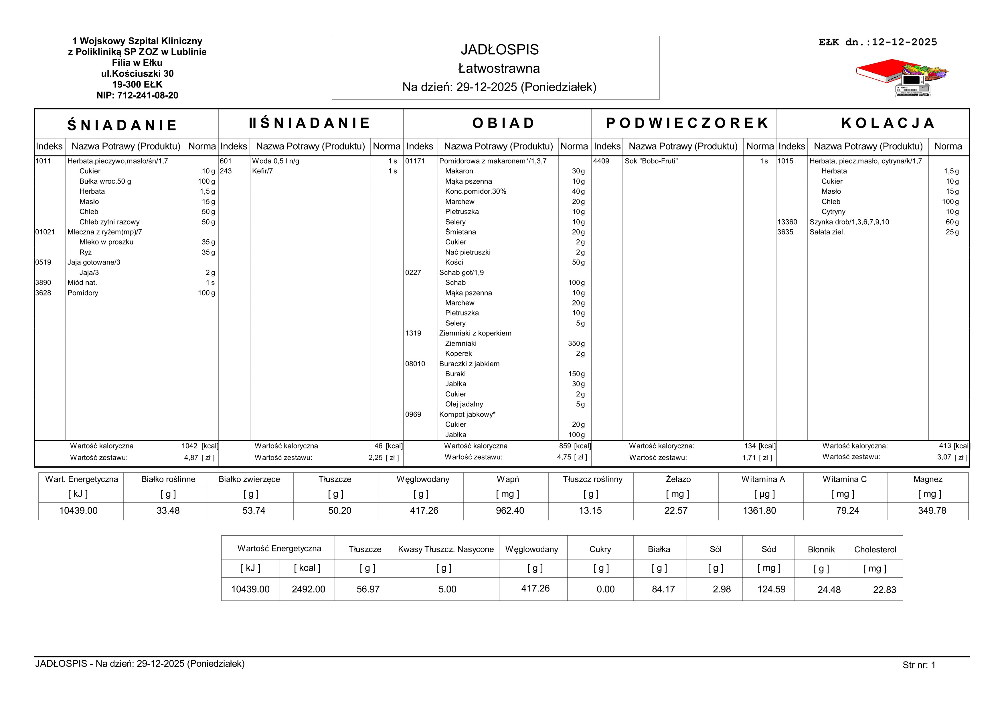 Poniedziałek 29.12.2025